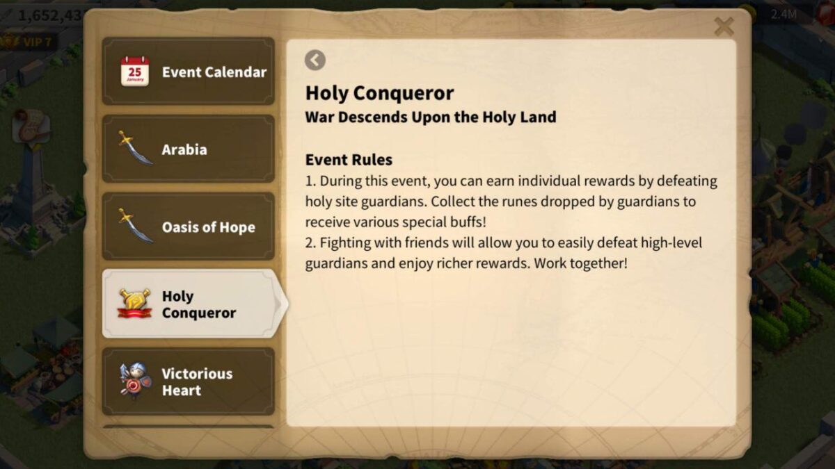 The Holy Conqueror Event is an Individual Event in the Rise of Kingdoms. This is also a Kingdom based event. Want to learn more about other Rise of Kingdoms Events?
